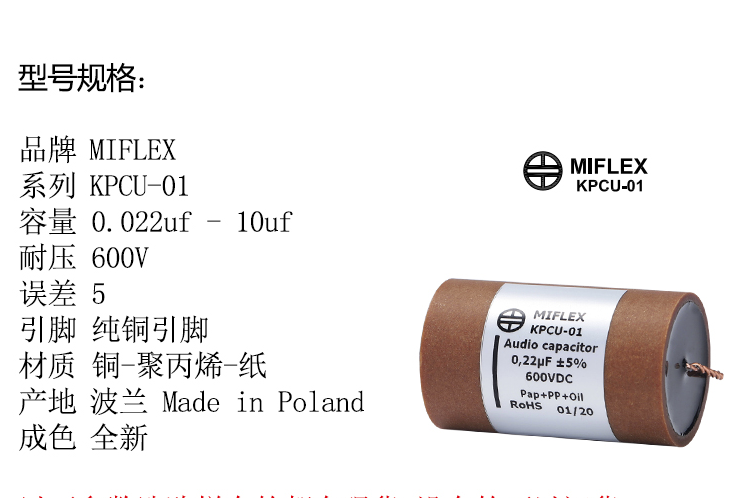 Poland original MIFLEX Mifort KPCU Copper Leap Tube Capacitor Audio Capacitor