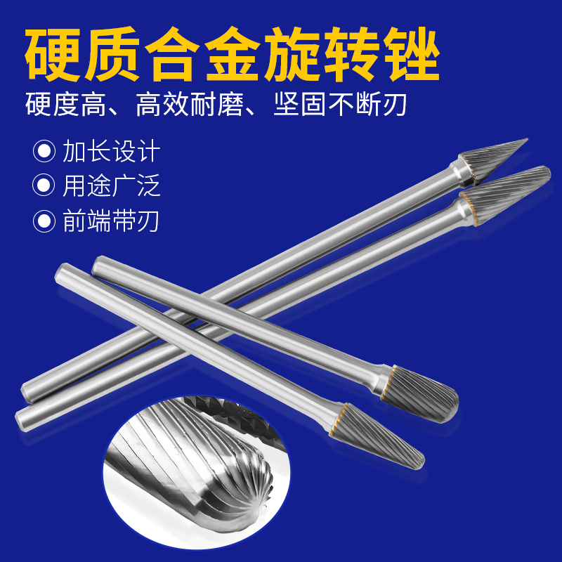 Grinding head metal grinding head carbide rotary file tungsten steel milling cutter head C-shaped LM type single-groove extended handle drill bit