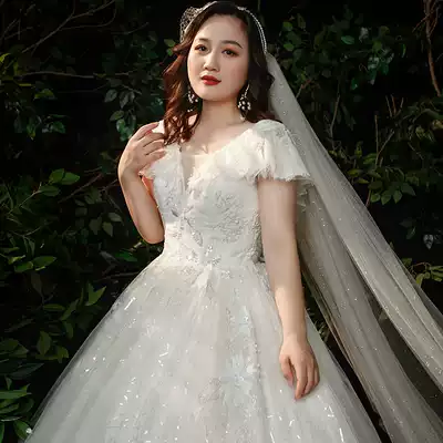 Large size wedding dress 2021 new bride temperament fat sister mm200 kg plus fat plus thin trailing Mori 300