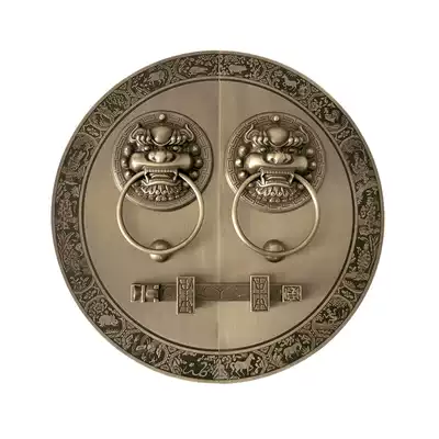Antique door lock Chinese pure copper lion head handle animal head door ring Villa courtyard wooden door bolt handle