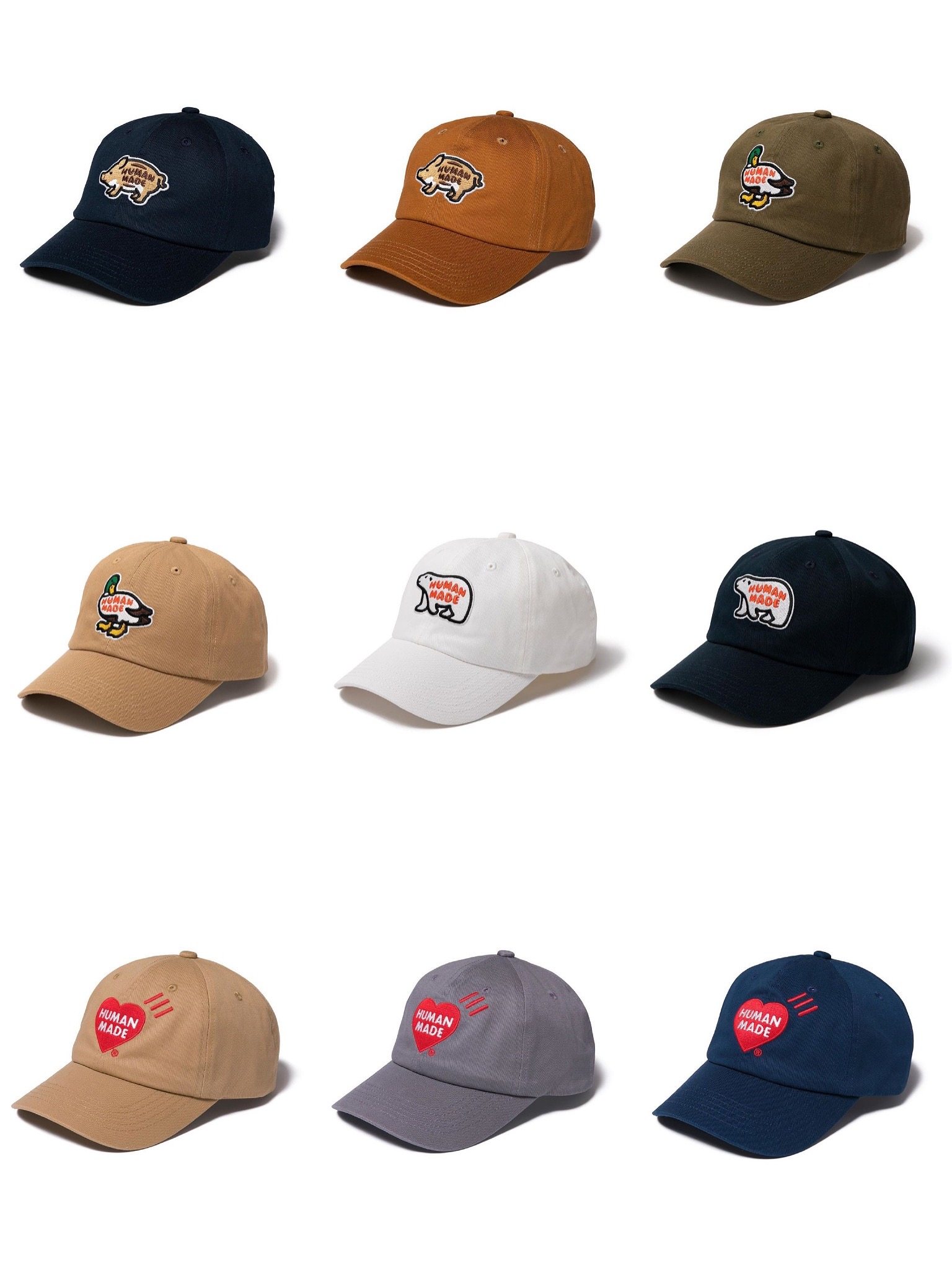 New HUMANMADE embroidered baseball cap curved brim hat men and women with the same paragraph rear adjustable duck polar bear