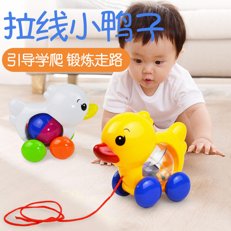 Baby pull line drag walker infant children children early education educational animal pull rope ring bell duck toy