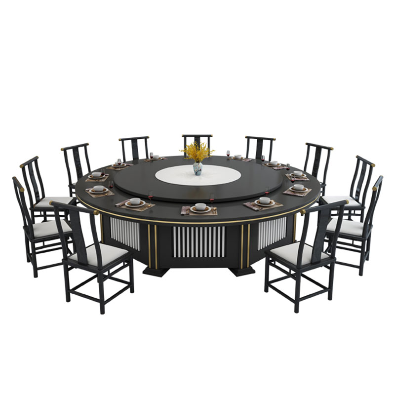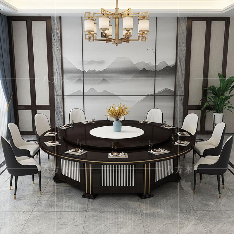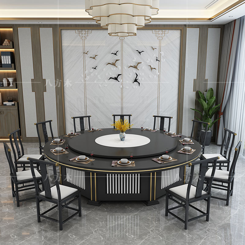 New Chinese dining table and chairs solid wood electric turntable big round table hotel club box villa Dapingshu furniture customization