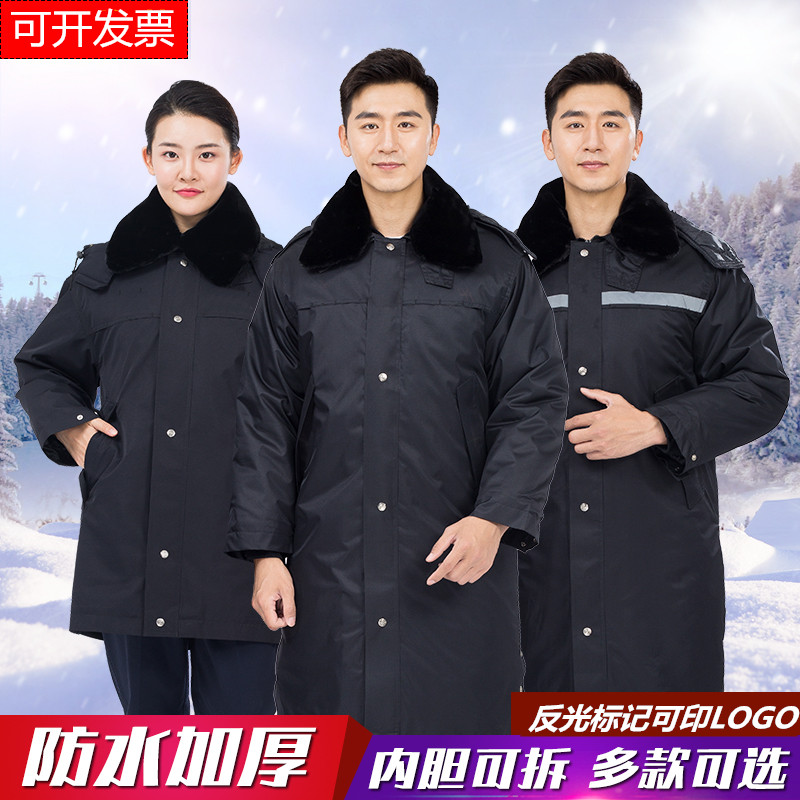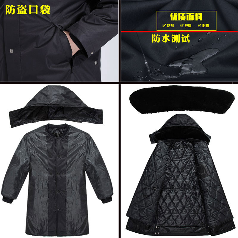 Winter security cotton clothing multi-function warmth coat extended thickness reflective bar area property doorman working clothes