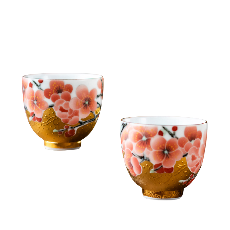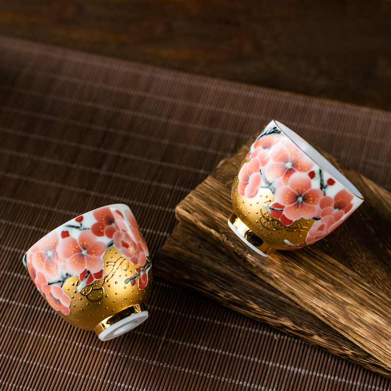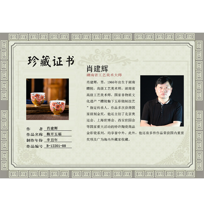 999 True gold hand-painted under-painted lovers to cup Celadon porcelain founder Xiao Jianhui's signature of the bottom of the tea drinking cup
