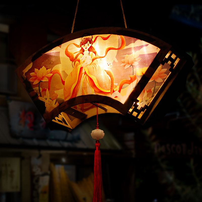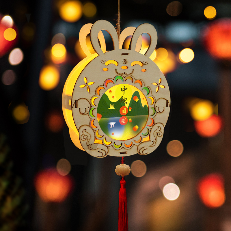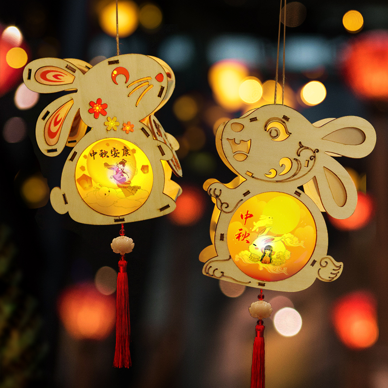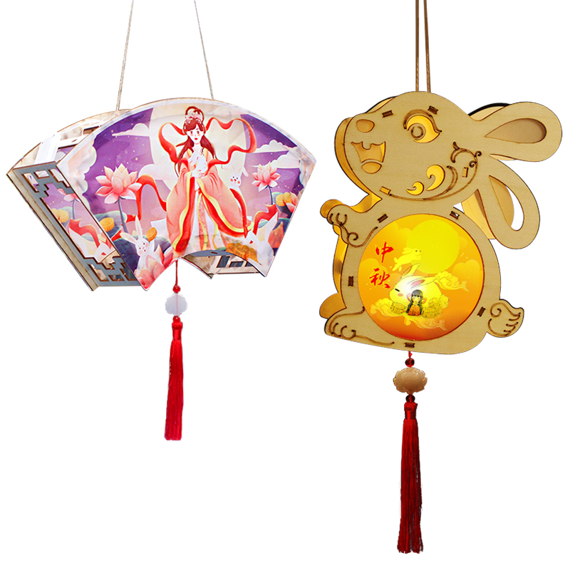 Mid-Autumn Festival Diy Rabbit Palace Lamp Material Bag Children Handmade Cartoon Printed Cloth Lantern Room Overhang Hanging Decoration Decoration
