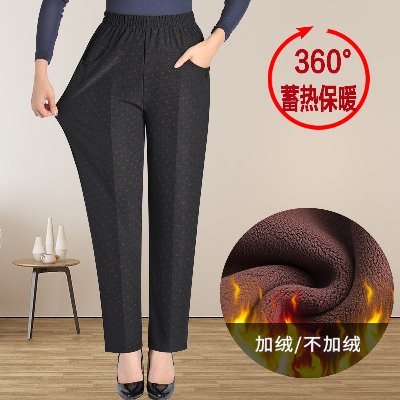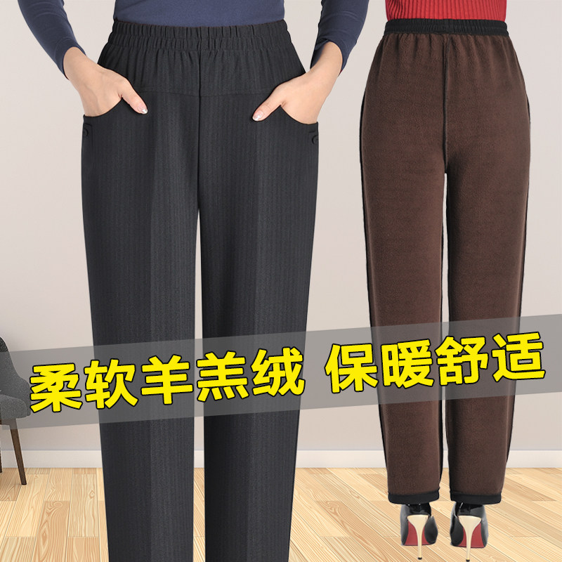 Mom pants autumn pants loose winter grandma high waist cotton pants Middle-aged lamb velvet female velvet thick wear outside