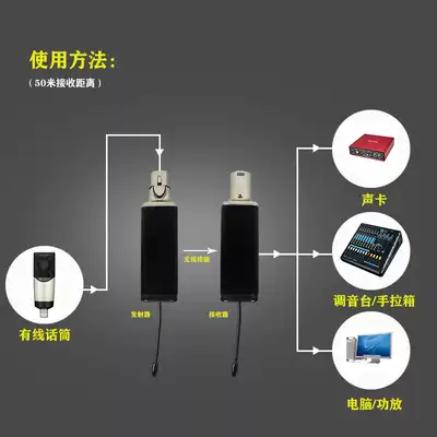Wired to wireless live converter with 48V Phantom Power capacitor moving coil microphone microphone instrument grenade