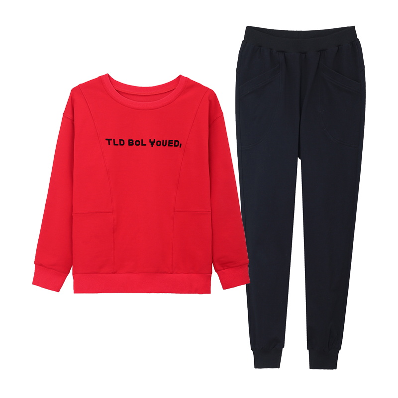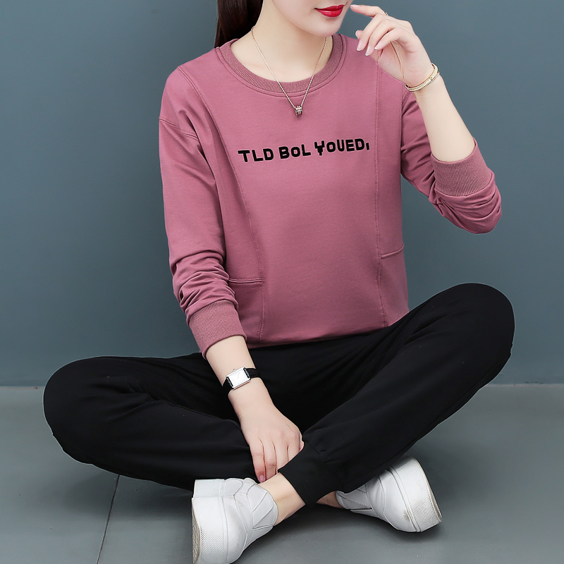 Grey casual sportswear suit women's spring 2022 new spring and autumn casual long sleeve printing thick cotton T two-piece set