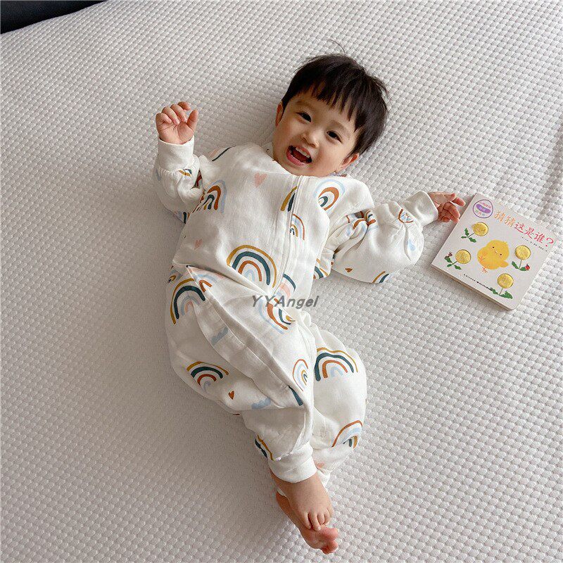 ins bamboo cotton sleeping bag baby spring autumn and winter baby legs sleeping bag all season universal 2-3-4 children cotton yarn anti kick quilt