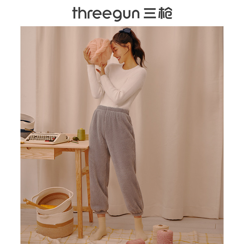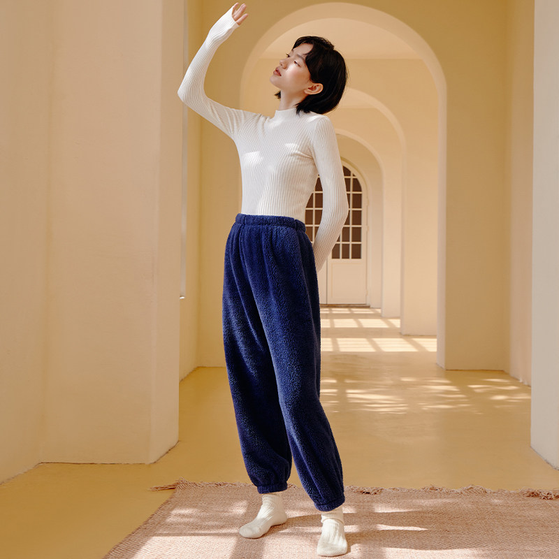 Triple Gun Sleeping Pants Woman Winter Plus Suede Thickened High Waist Comfort Suede Morandi Color Lady Casual Warm Pants Sleeping Pants