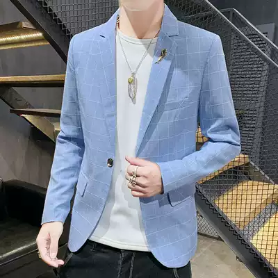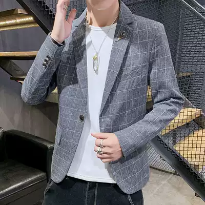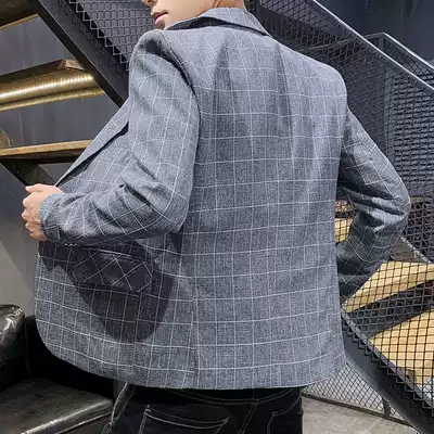 Plaid suit men's Korean version of self-cultivation casual handsome British style trend new small suit single western coat men