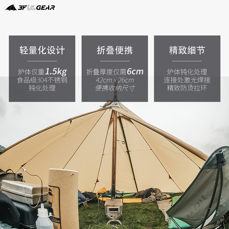 Sanfeng tribe firewood stove camping picnic camping stainless steel folding multi-functional stove heating stove in autumn and winter tents