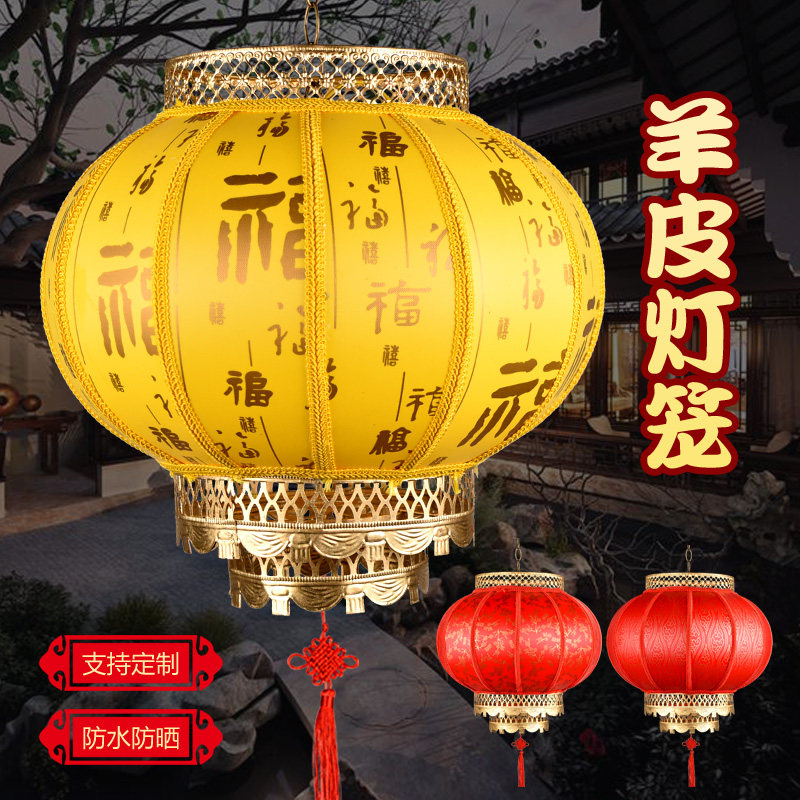 New Year outdoor Imitation Ancient Sheep Leather Round Lantern Outdoor Waterproof Sunscreen Big Red Advertising Lantern Hotel Engineering Set-Taobao