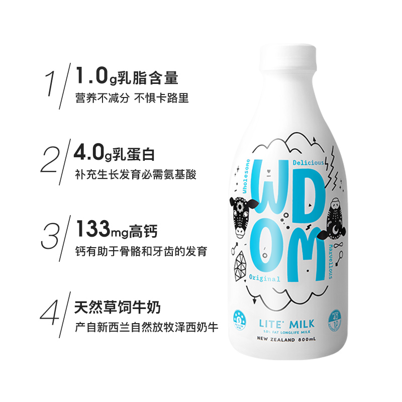 New Zealand WDOM Wo Kang 1 0 Low fat pure milk high calcium 4 0 Protein imported breakfast 800ml*4 bottles