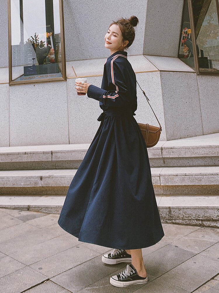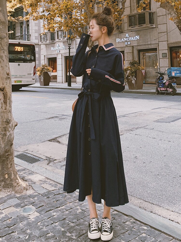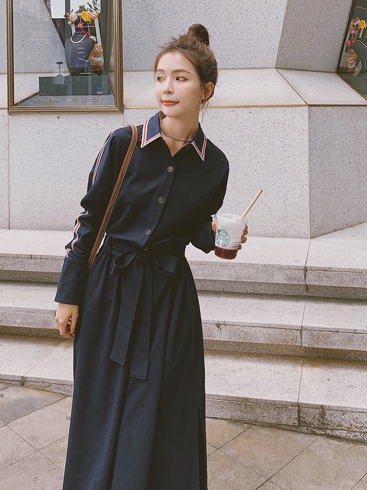 Lecea Alice Long Sleeve Dress Women's 2022 Spring New Hepburn Style Waist Skinny Foreign Style Skirt