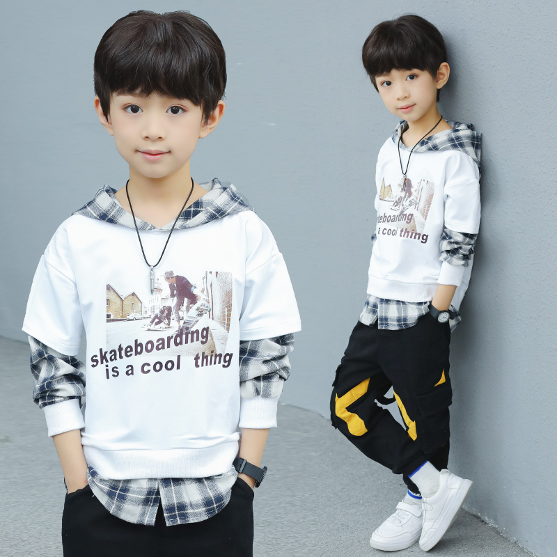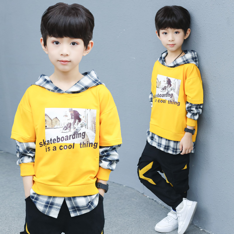 Boys' sweaters 2020 spring and autumn new children's holiday two tops boys' middle school children's autumn and winter Korean edition casual shirt
