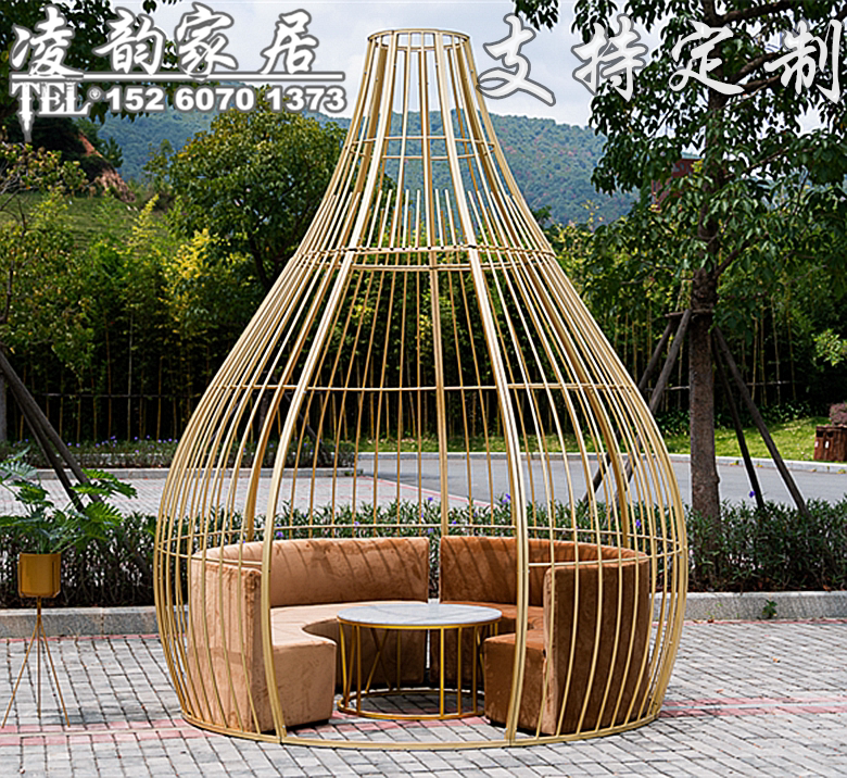 European-style wrought iron large birdcage hotel dining room extra-large decorative decoration birdcage hot pot restaurant golden cage custom