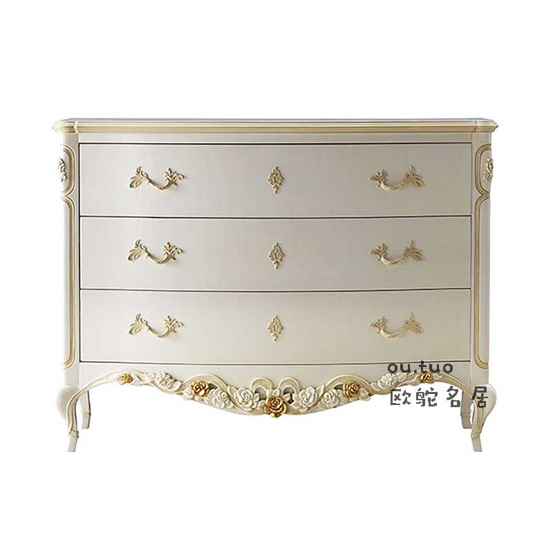 French solid wood carved nightstand neoclassical style locker Bedroom bedside cabinet European style bucket cabinet Princess bed end bench