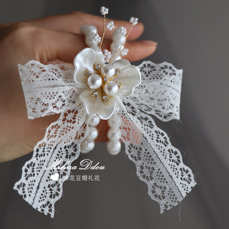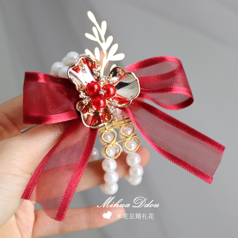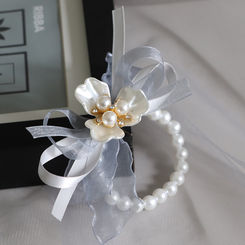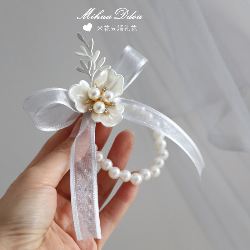 Advanced Grey Jade Ylon Wrist Flower Small Fresh Knot Wedding Bridal Bridesmaid Sisters Flower Wine Conference Hand Floral Wrist Flowers