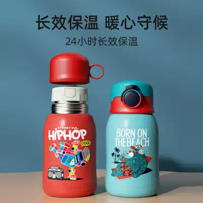 United States Melais children's thermos cup with straw Primary school students dual-use 316 stainless steel men and women kindergarten water cup