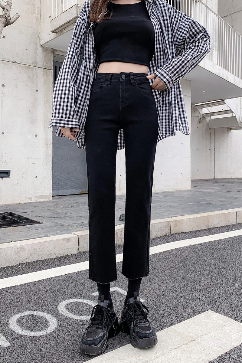 Straight jeans women's summer thin 2021 new high waist thin high wild loose wide leg nine-point pants