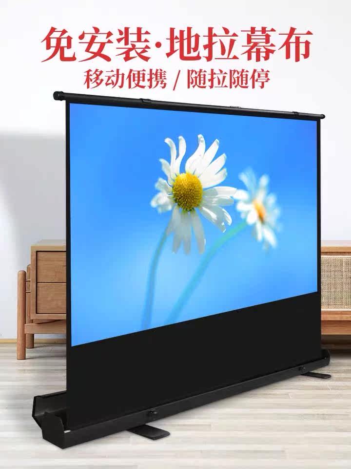 Projector Ground Pull Curtain Cloth Anti-Light Bracket Movement Portable Through Sound Manual Metal Home Landing Curtain