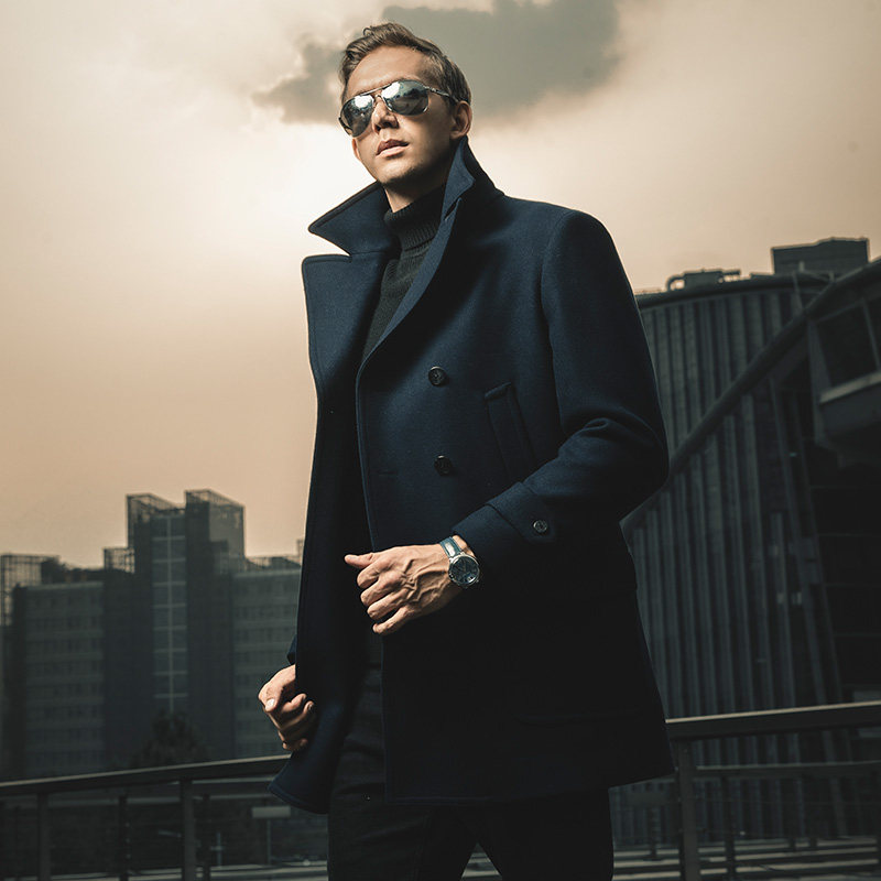 2020 Dragon's Tooth New American Navy Coat Men's Mid-Length Winter Business Casual Windproof Wool Jacket