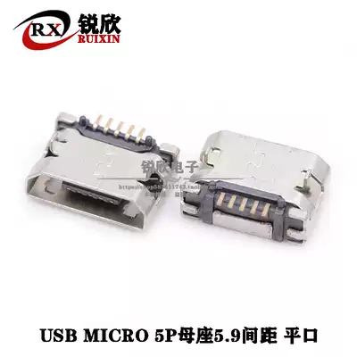 MICRO-5P female seat B-type front plug and rear affixed with column 5 9 spacing flat mouth crimping Android data interface pins