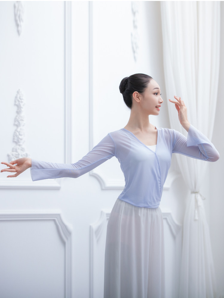 Chinese dance long-sleeved lace-up gauze modern classical national body rhythm yoga performance basic training dance training clothes female