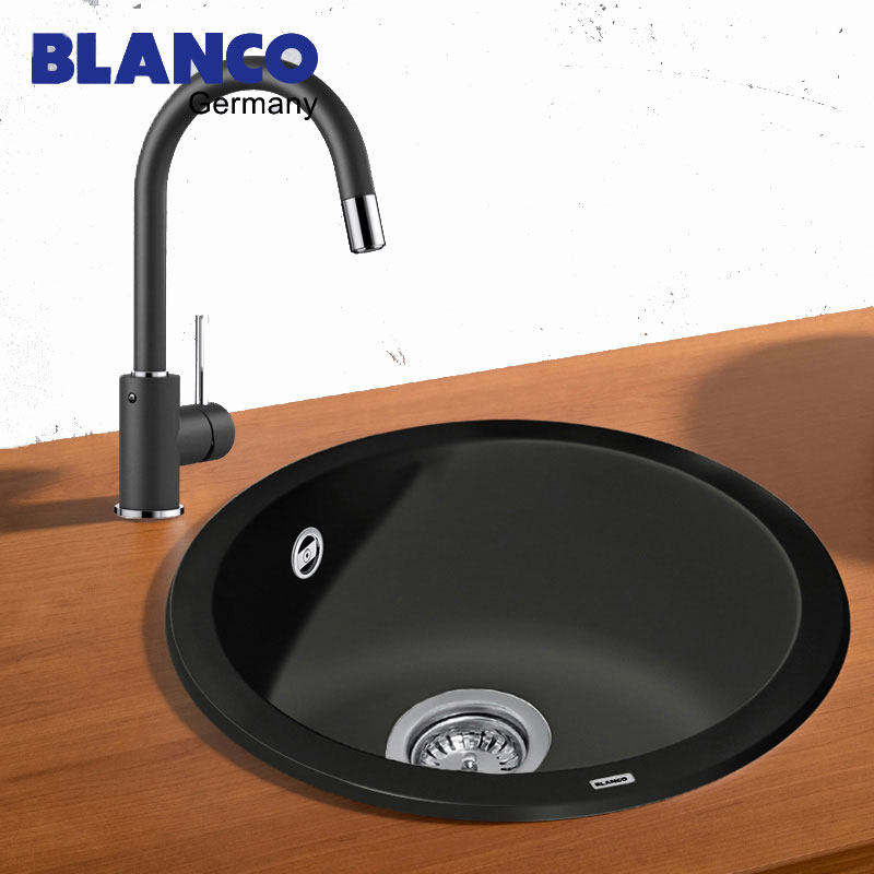 German Platinum Wave High Granite Round Shaped Single Sink Kitchen Wash Vegetable Basin Quartz Stone Bench Up And Down Sink 511629 Kitchen Basin
