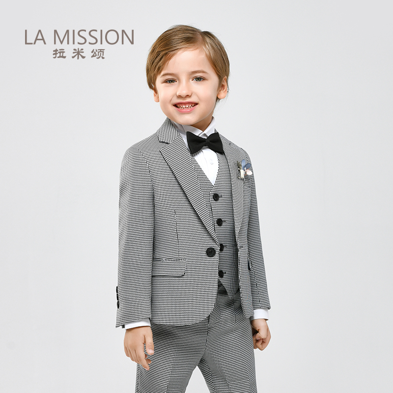 Lamison black and white houndstooth boy suit wedding ceremony flower girl dress catwalk piano performance children's suit