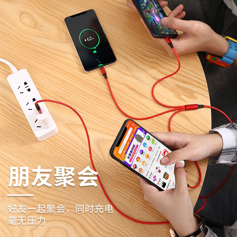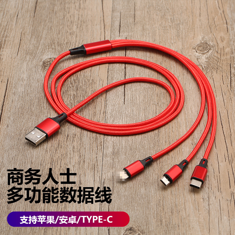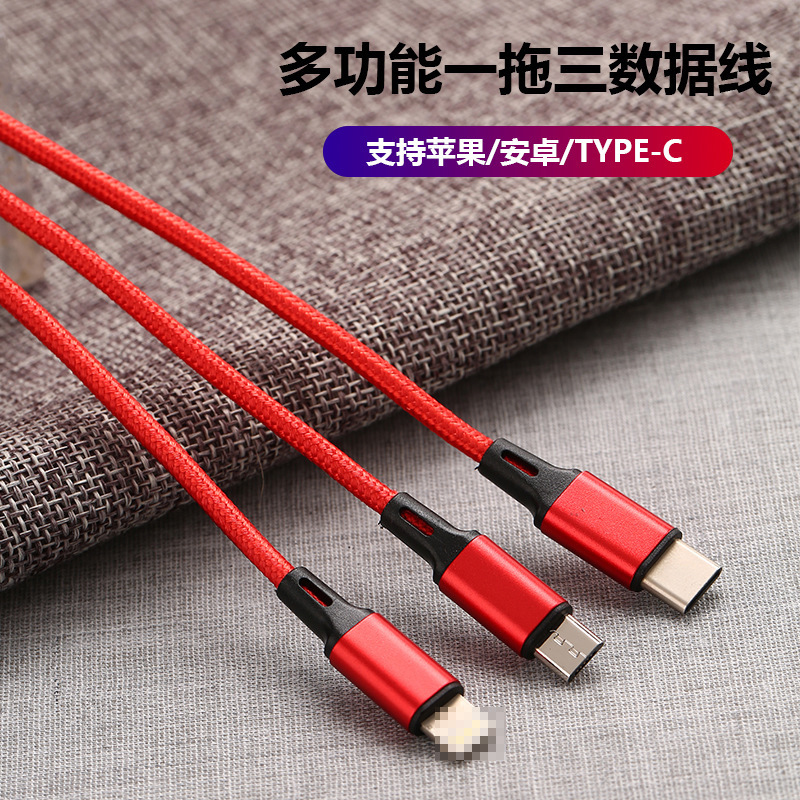 (Single pack)1 2 meters China red one drag three (Apple Android type-c) (Single pack)1 2 meters Athens black one drag three (Apple Android type-c)