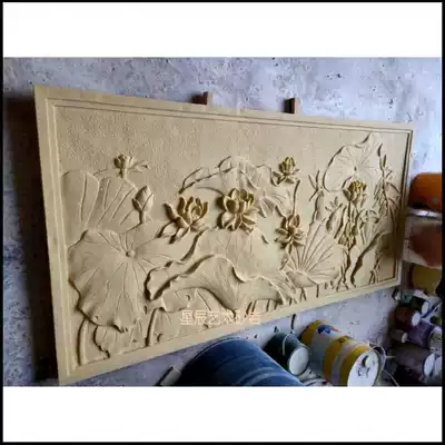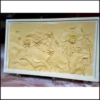 Sandstone sculpture fiberglass relief Chinese three-dimensional mural lotus picture TV background wall Hotel Villa decoration