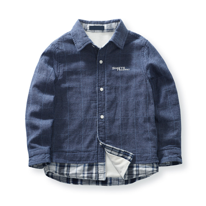 Boy Warm Imitation Denim Plus Suede Shirt Pure Cotton Thickened Autumn Winter Children Plaid Lining Jacket Foreign Trade Boy Clothing 2