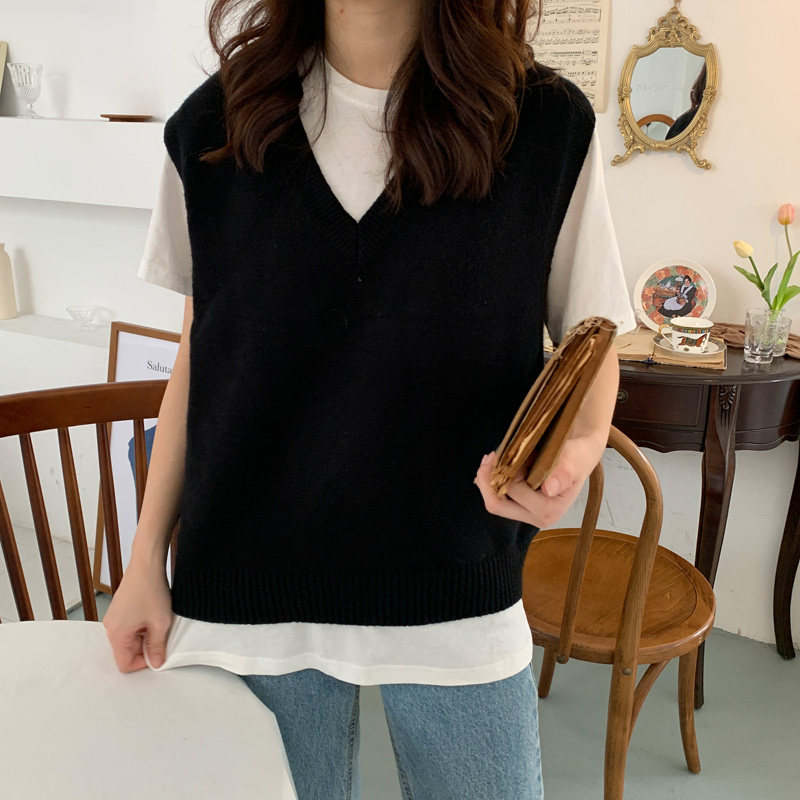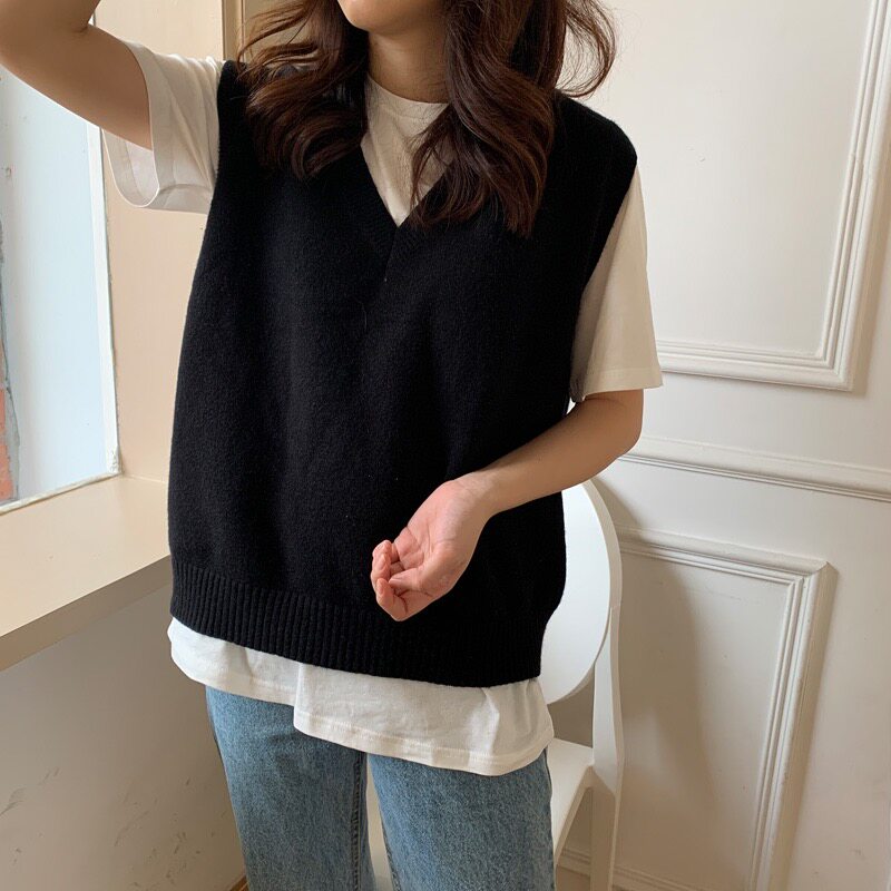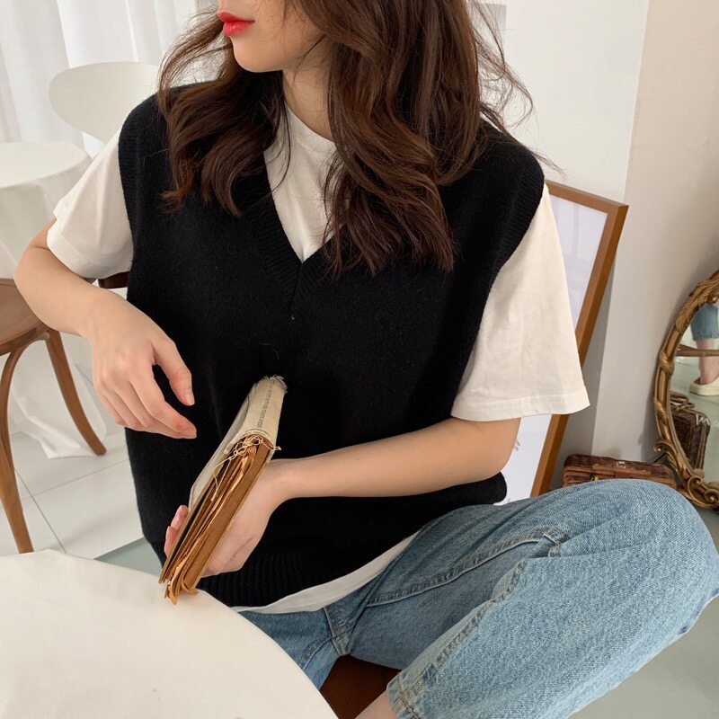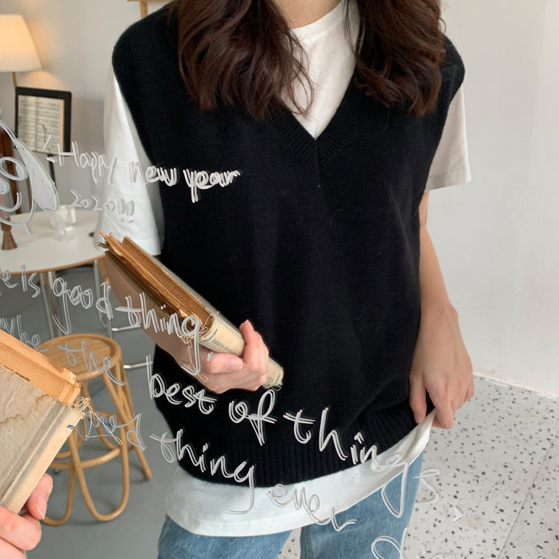 2020 new fall V collar sweater primary autumn black knit waistcoat jacket knit blouse female outwear