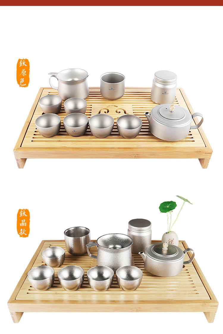 Titanium Tea Set with Titanium Crystal Ice Flower Tea Set