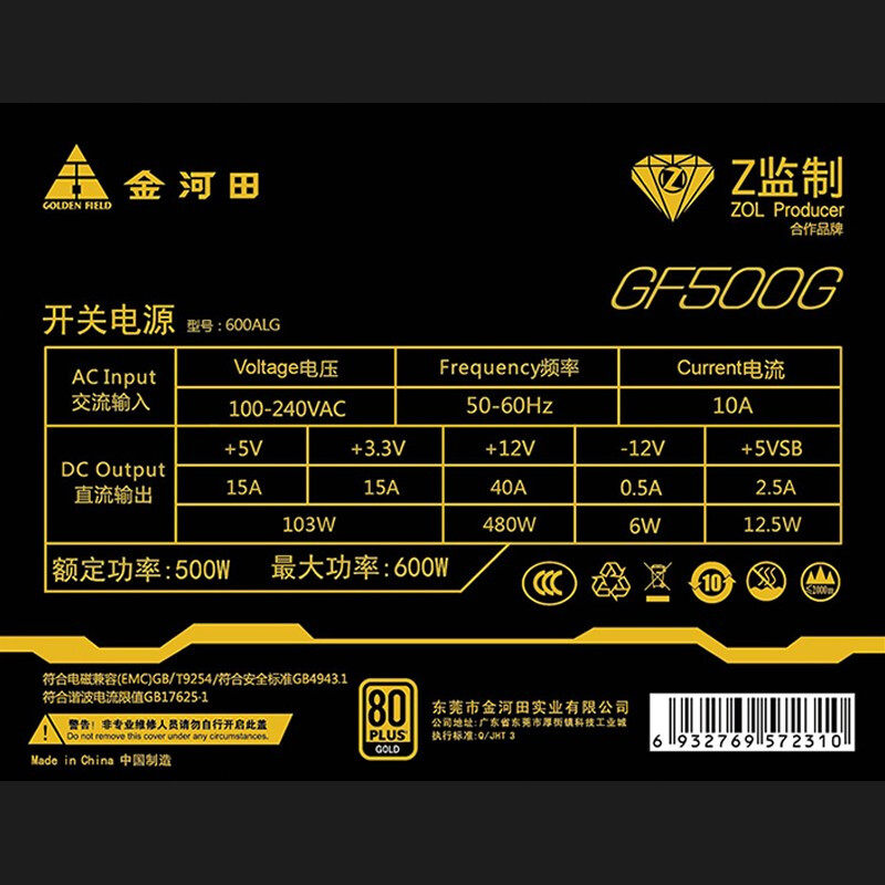 GF500G gold medal power supply 500W GF600G gold medal power supply 600W GF700G gold medal power supply 700W