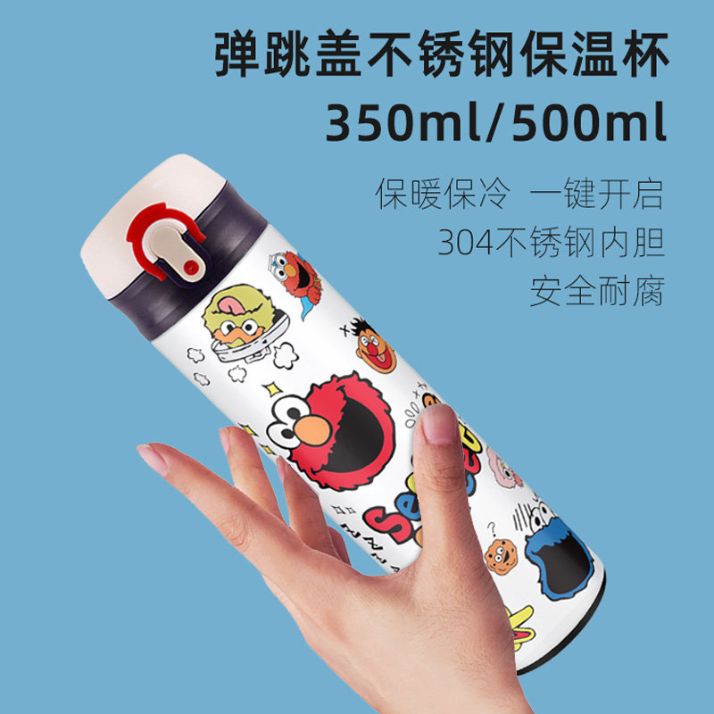 Sesame Street Cartoon Minimalist Insulation Cup Creative Bounce Cover Large Capacity With Hand Water Glass Cute Student Male And Female Gift
