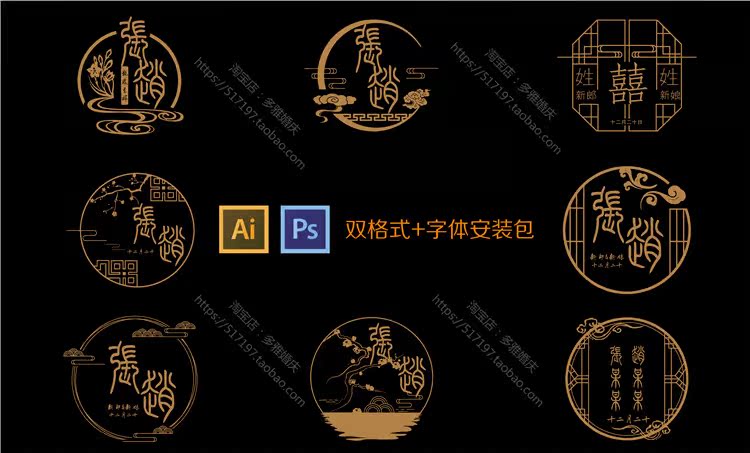 Little Red Book New Chinese Wedding LOGO Design Picture Ancient Style LOGO Picture Welcome Brand Classical Golden Design Material