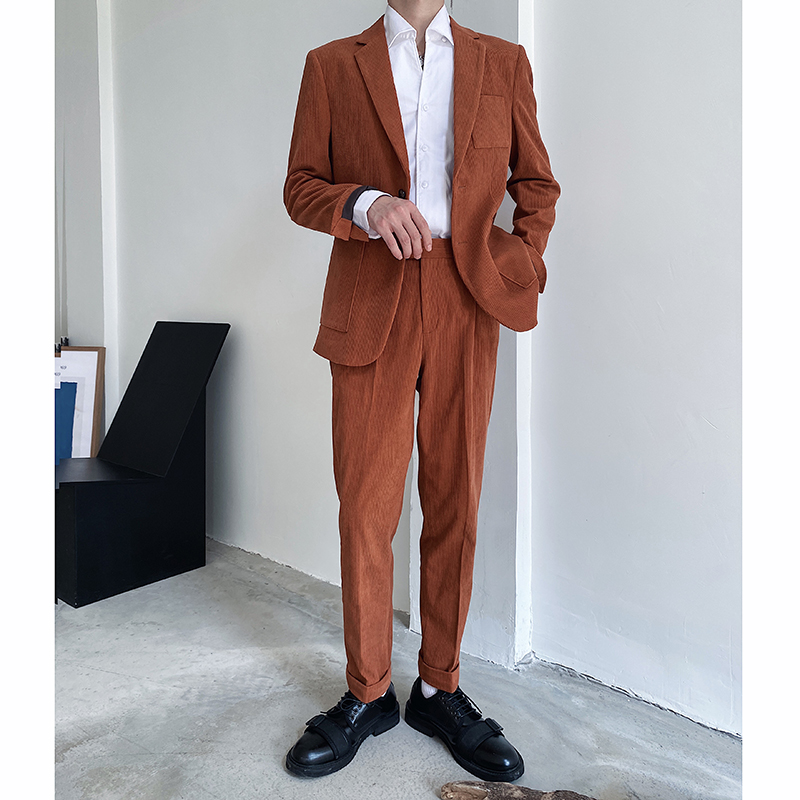 ICHULB loves to wear corduroy texture retro suit suit men's British slim suit fashion advanced