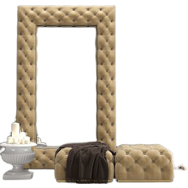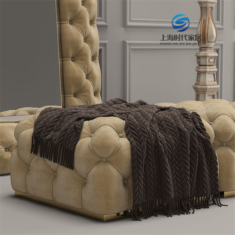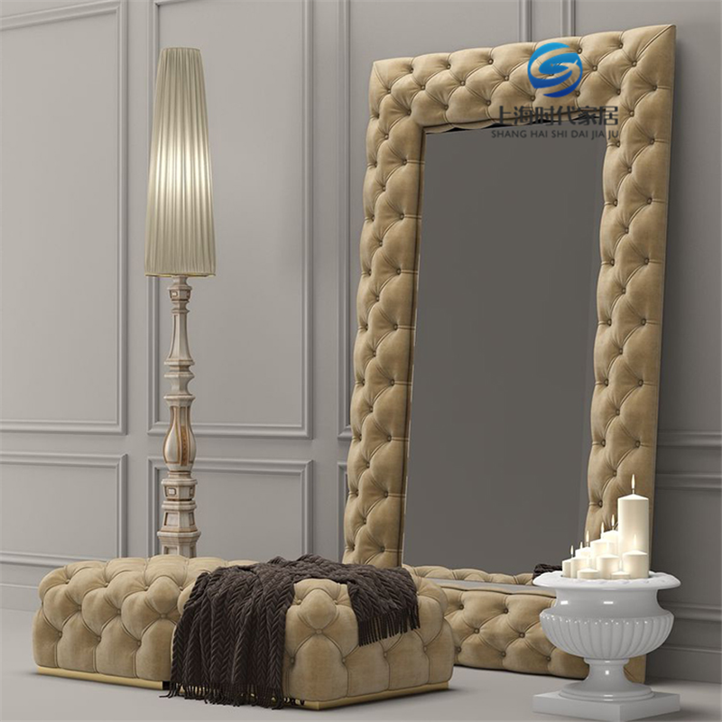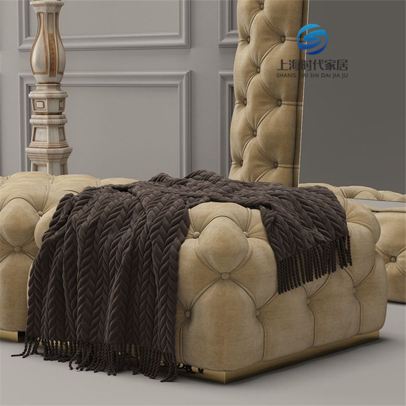 American-style solid wood light luxury pull-button fabric shoe changing stool sofa stool makeup chair full-body mirror cloakroom stool bed end stool