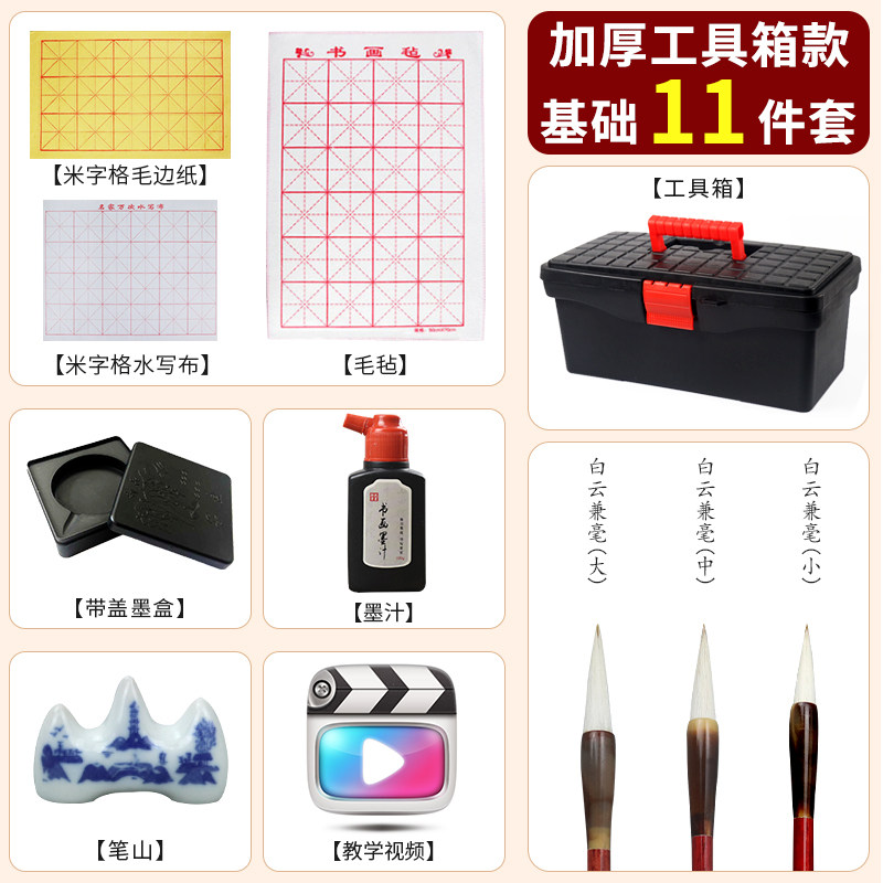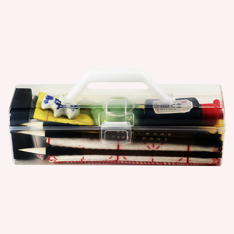 Transparent Portable Calligraphy Four Treasures (7-piece set of basic calligraphy for students) Recommended by calligraphy teachers - Transparent Portable Classroom Four Treasures (10-piece set for student calligraphy beginners) Thickened portable calligraphy storage box (11-piece set for calligraphy entry model) Thickened portable calligraphy storage box (calligraphy promotion model 16-piece set) Thickened portable calligraphy storage box (calligraphy deluxe 19-piece set) Luxury brocade box set (professional calligraphy 11 sets)