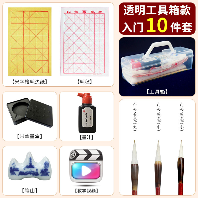 Calligraphy Teacher Recommendation - Transparent Portable Study Room Four Treasures (10-piece set of students' calligraphy introductory style)