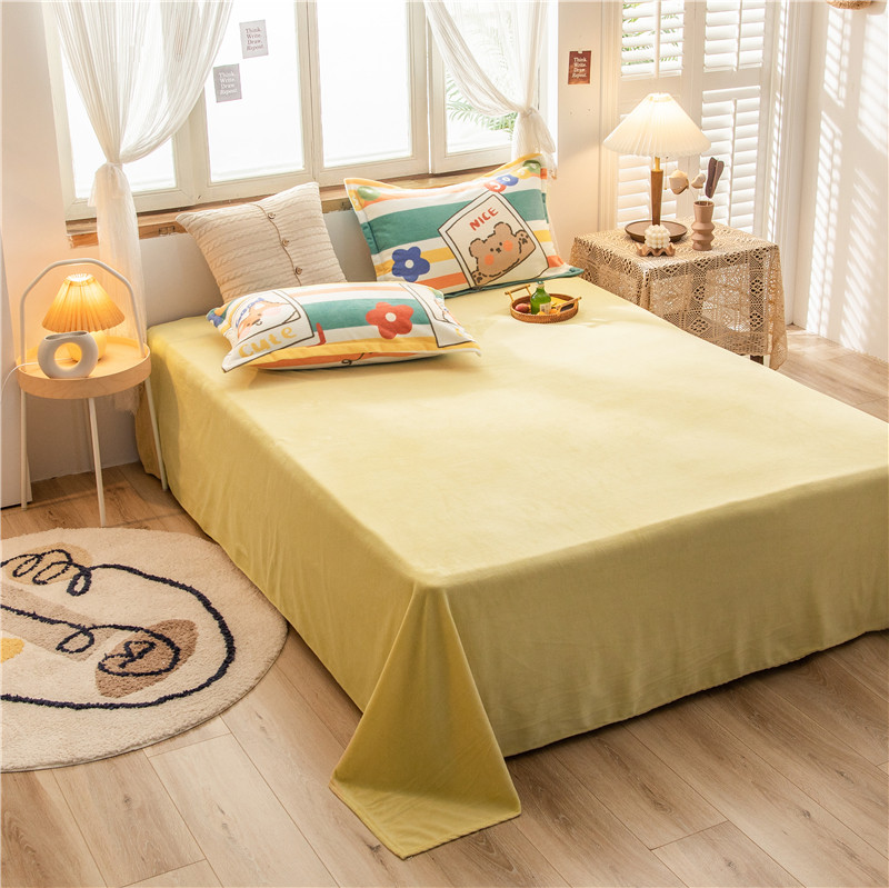 (Fuji Shop) Autumn Thickening Faller Linen Bed Linen Velvet Milk Suede Keep Warm By Single Student Dorm Room Home