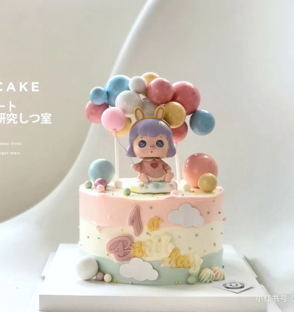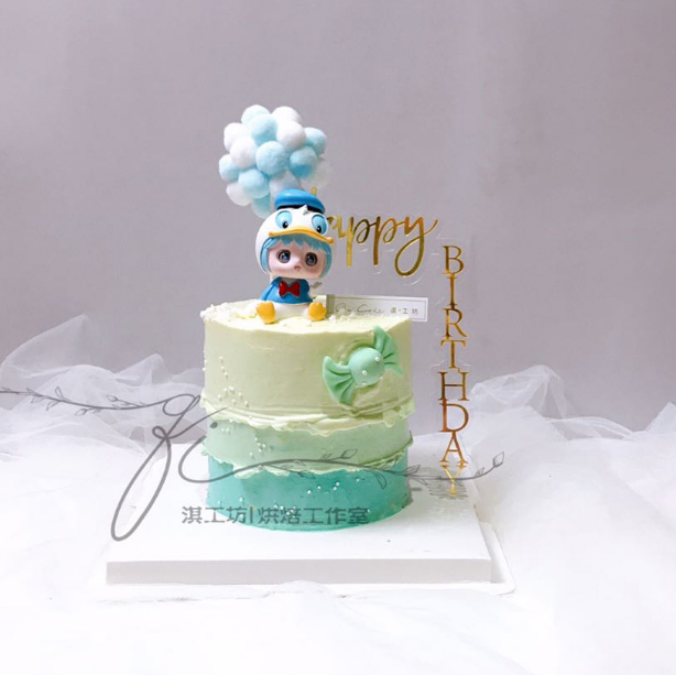 Cartoon cute child birthday cake decorated adorable Pikachu Donald duck balloon love baby