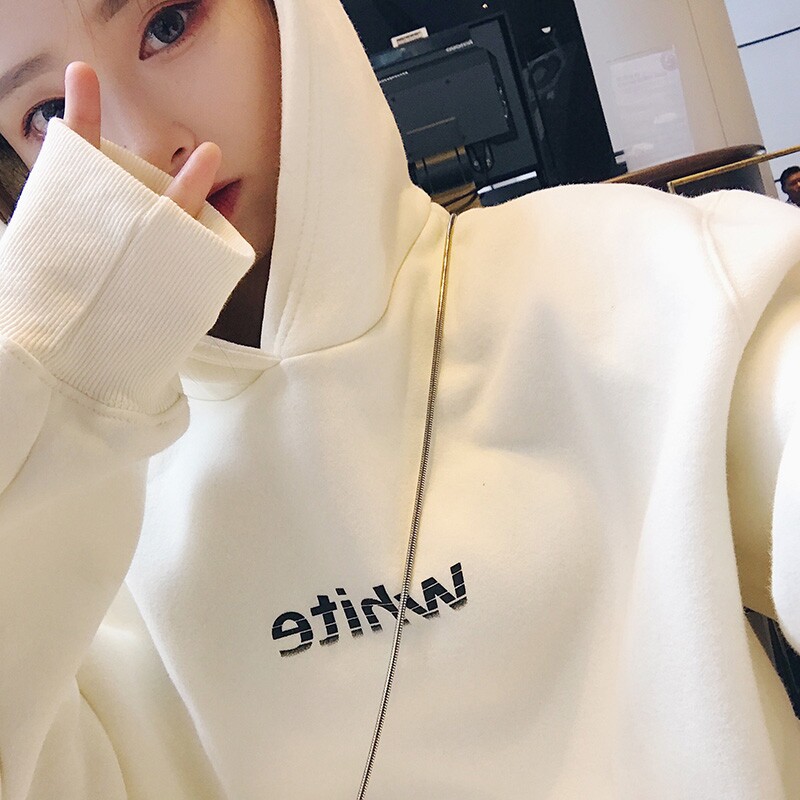 Sweater women's 2022 new spring and autumn loose Korean version plus velvet thickened hooded thin top trendy ins super hot