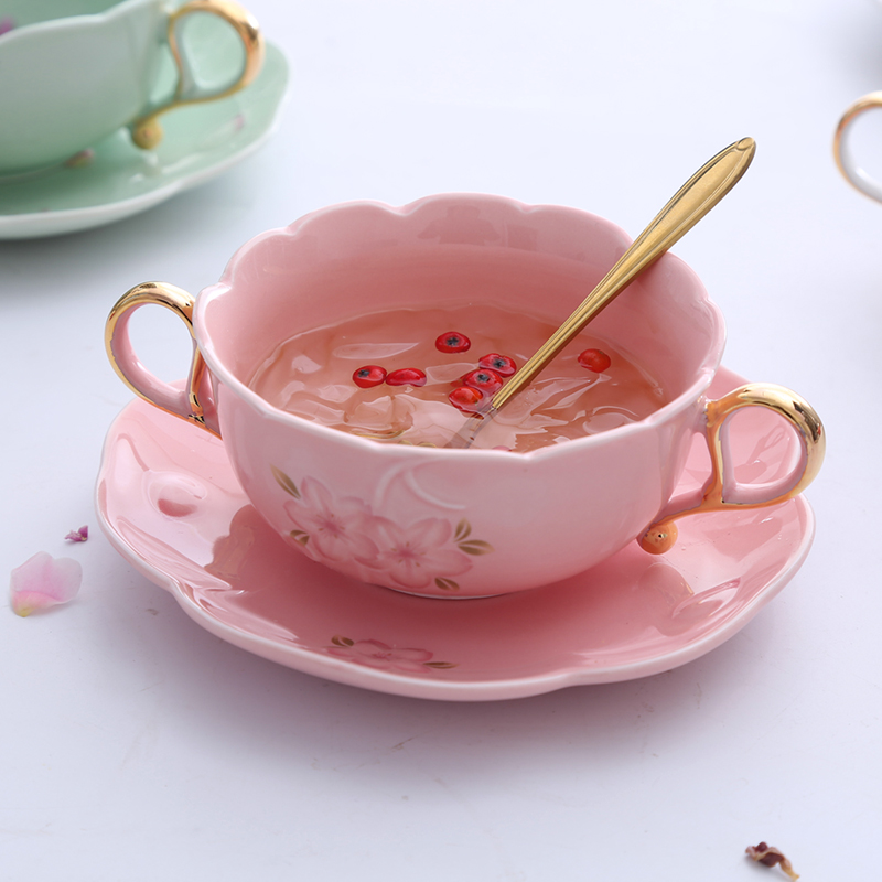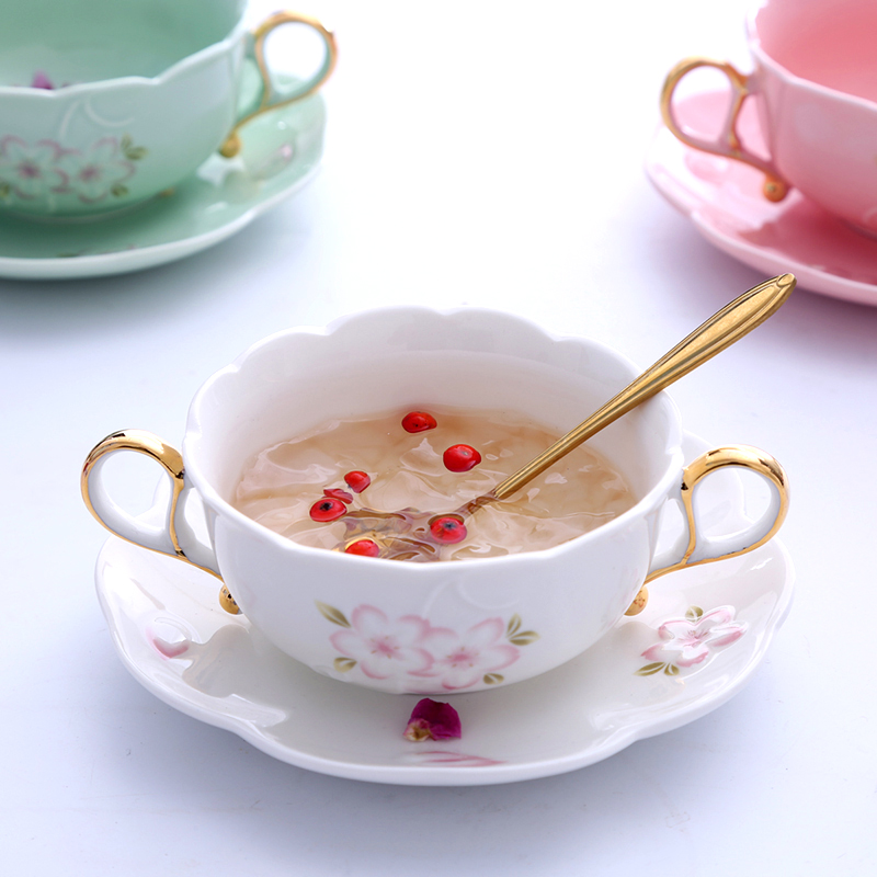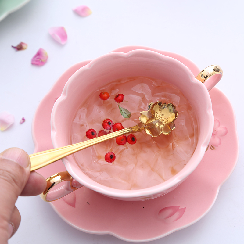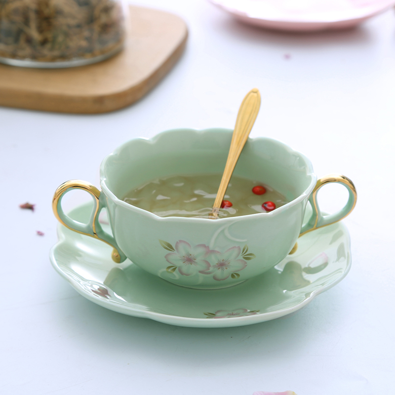 Green cherry blossom double ear bowl cherry blossom plate leaf spoon pink cherry blossom double ear bowl cherry blossom plate leaf Spoon white cherry blossom double ear bowl cherry blossom plate leaf spoon green cherry blossom gold double ear bowl cherry blossom