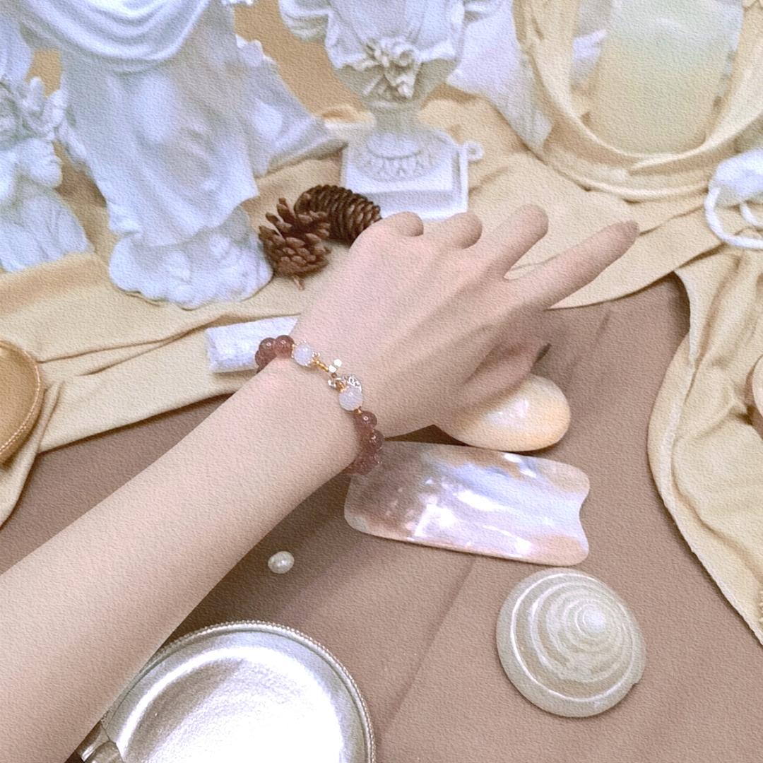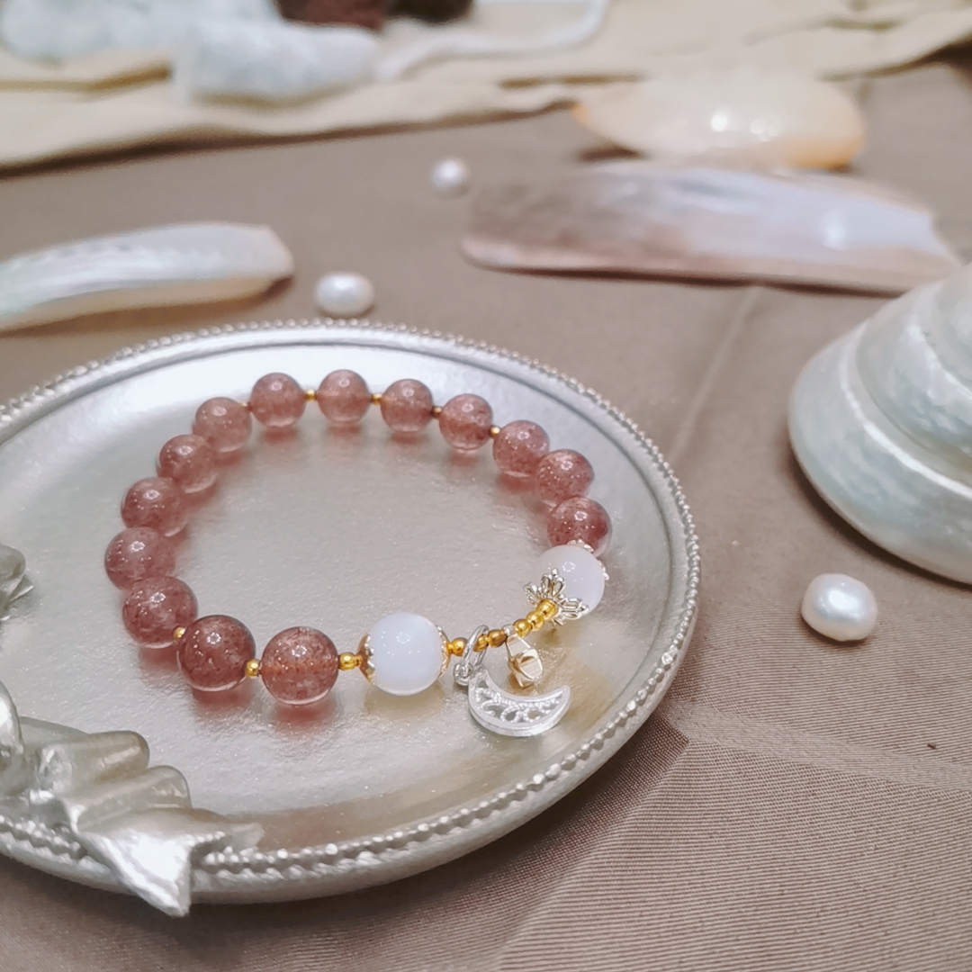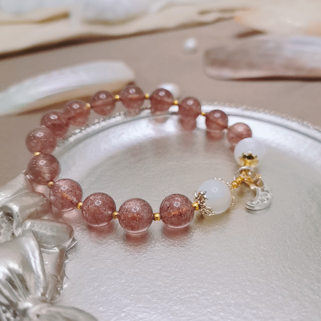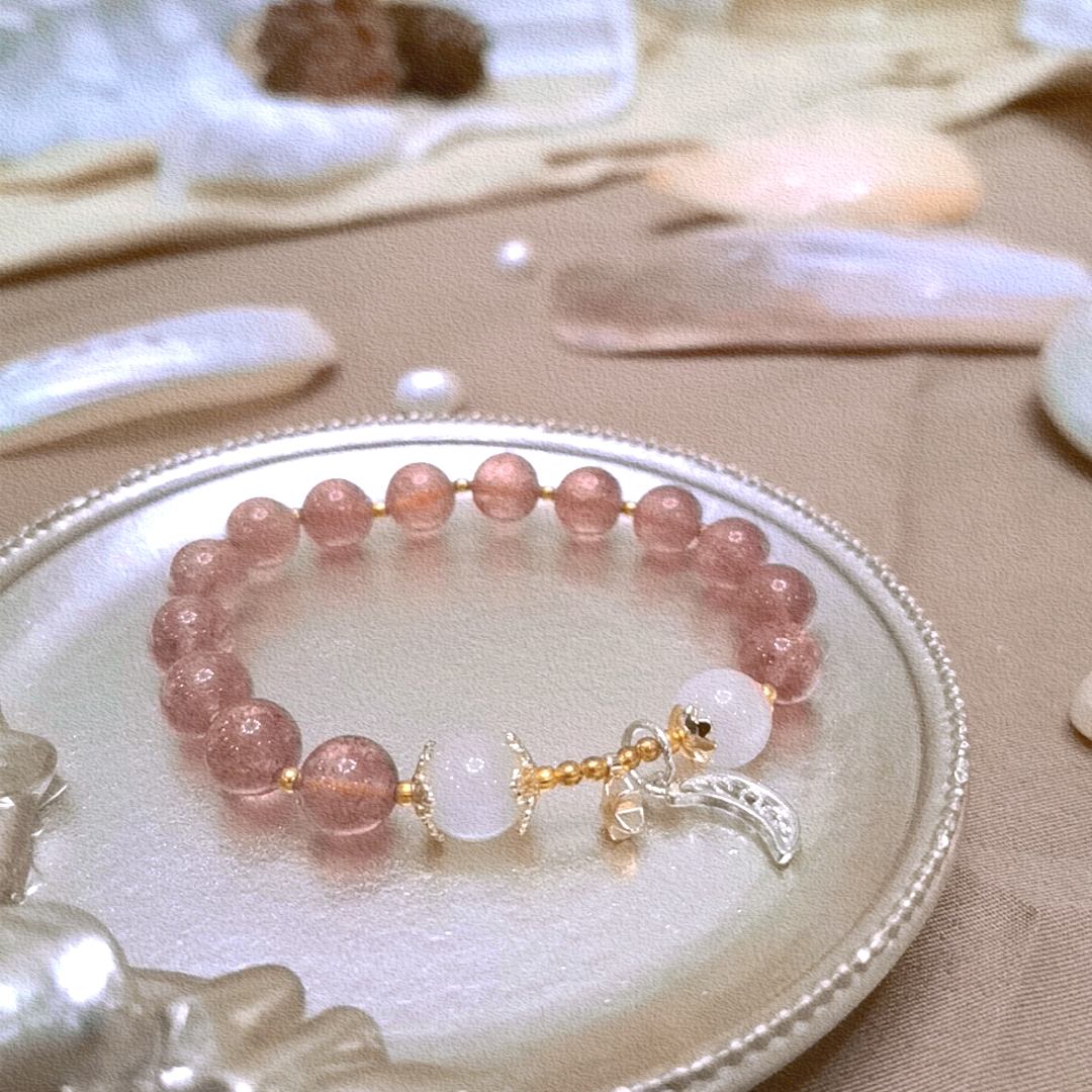 "Moon Goddess" Original Niche Design Handmade Strawberry Crystal White Moon Light Peach Flower Love Transit
