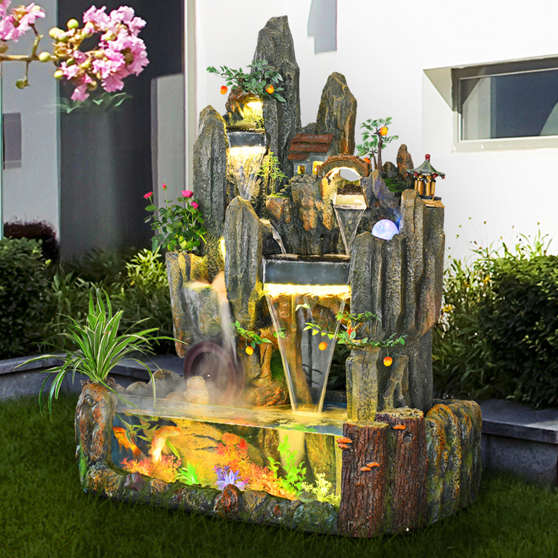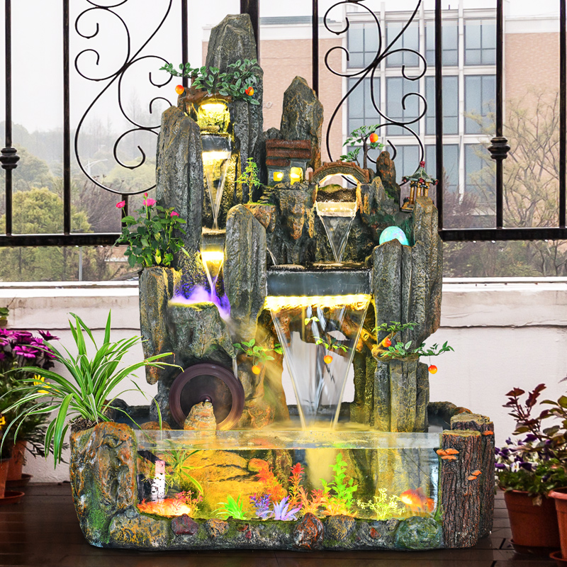 Large rockery flowing water fountain landscape fish tank decoration hotel office feng shui wheel lucky porch transfer ornaments